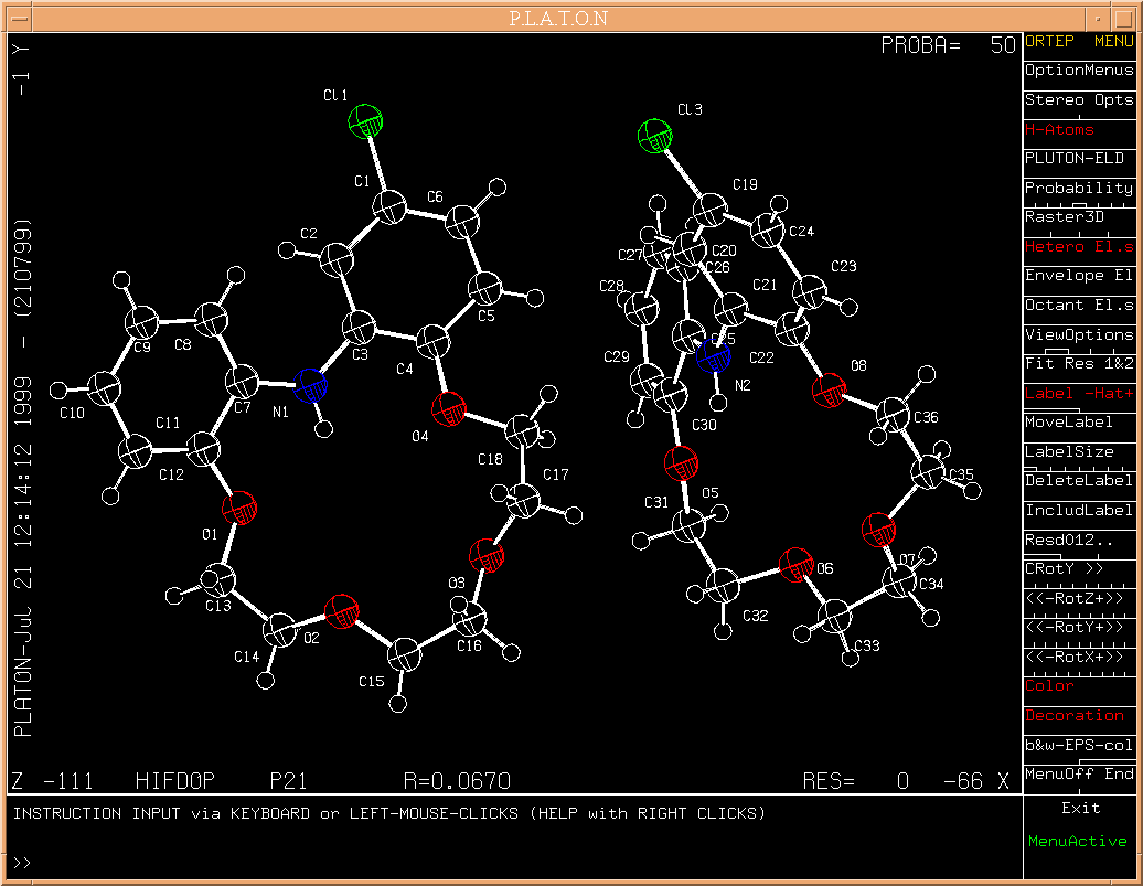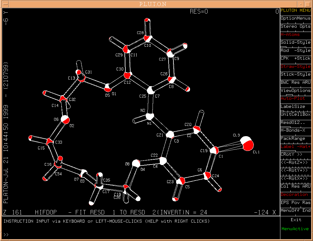 Hydrogen atoms are not included in the automatic fit, but included in the subsequent PLUTON style display.