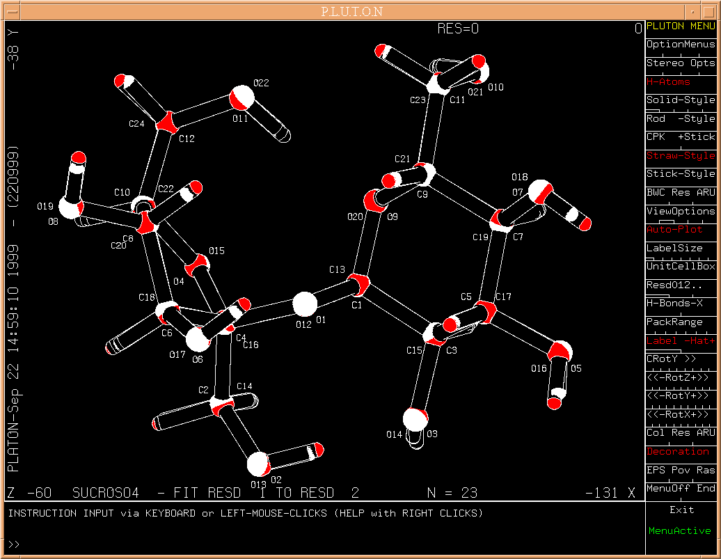 By default (i.e. without the specification of residue numbers), residue #1 is fitted on residue #2. Other fits should be specified explicitly from the keyboard (e.g. 'FIT 2 3').