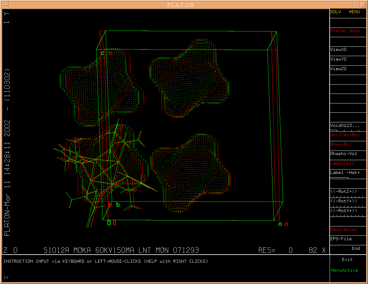 Solvent accessible volumes in a structure may be detected using the PLATON/SOLV utility. The PLOT option allows the graphical inspection of the solvent areas.